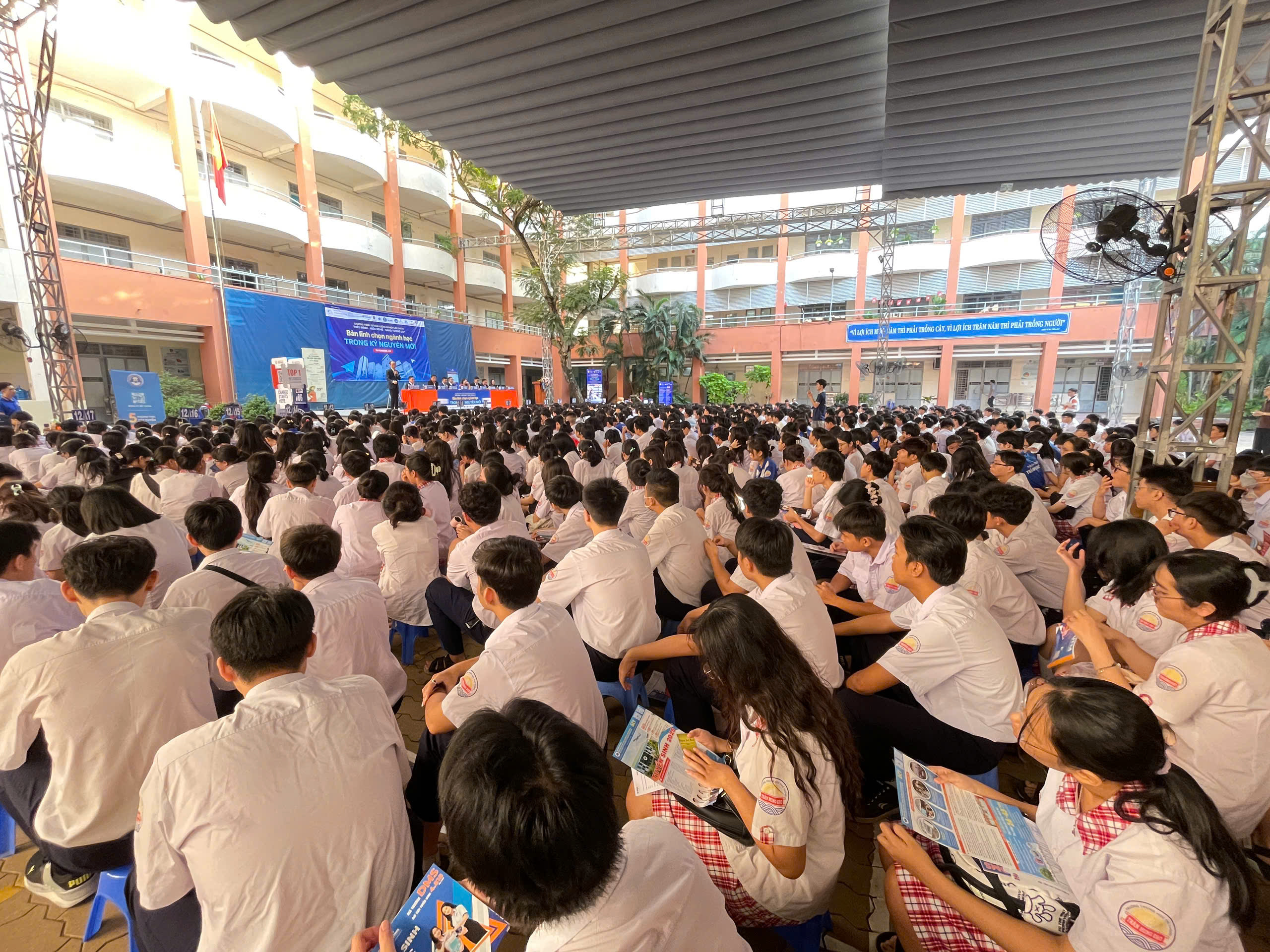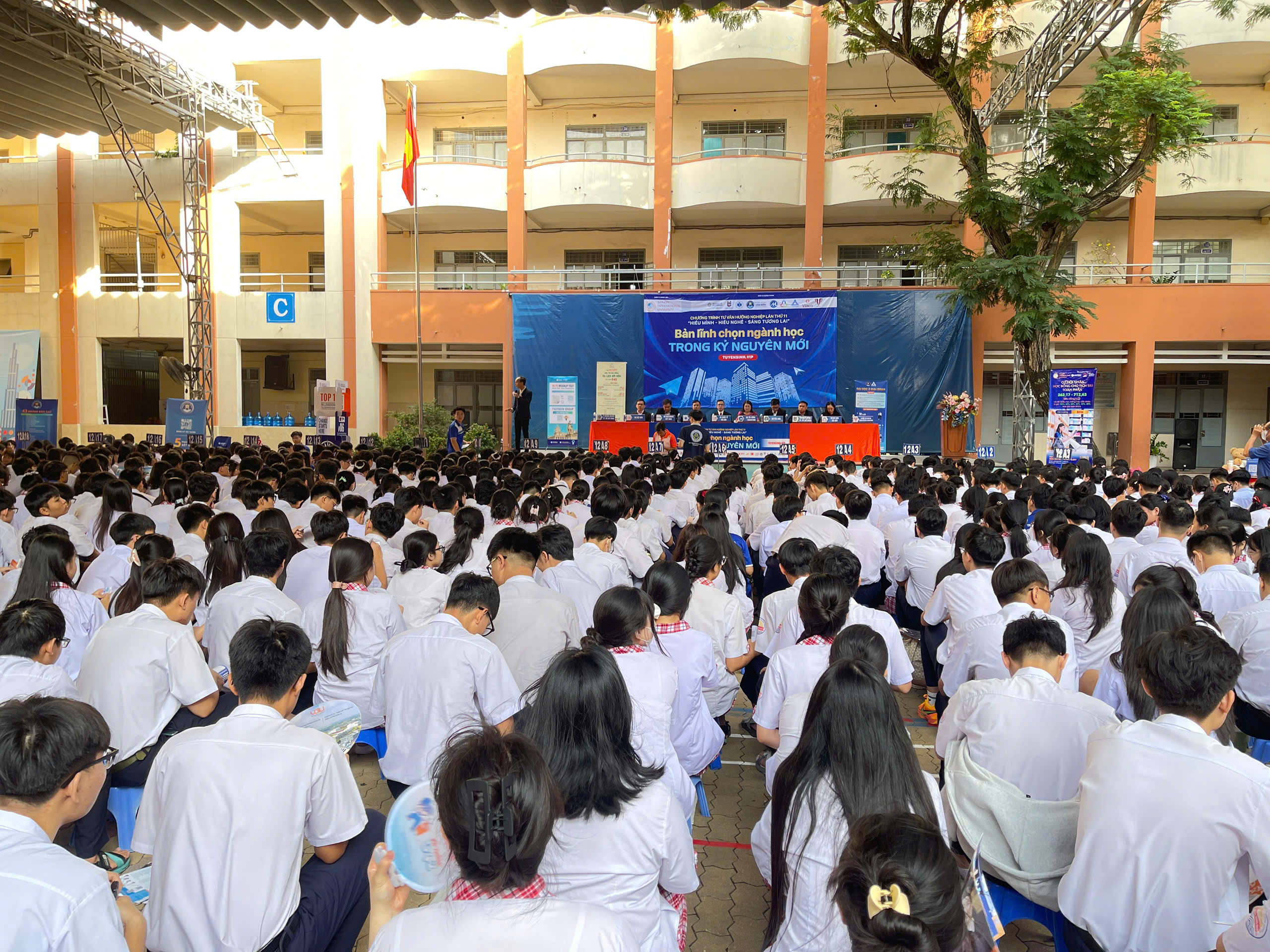 Sáng ngày 18 tháng 10 năm 2025, tại Trường THPT Trần Hưng Đạo (TP.HCM), chương trình Tư vấn hướng nghiệp “Hiểu mình – Hiểu nghề – Sáng tương lai” với chủ đề năm 2025: “Bản lĩnh chọn ngành trong kỷ nguyên mới” đã diễn ra sôi nổi, thu hút đông đảo học sinh tham gia.
